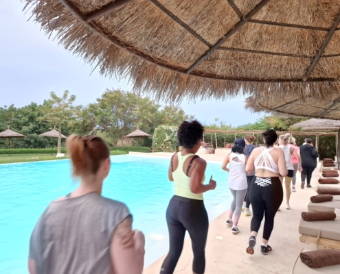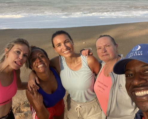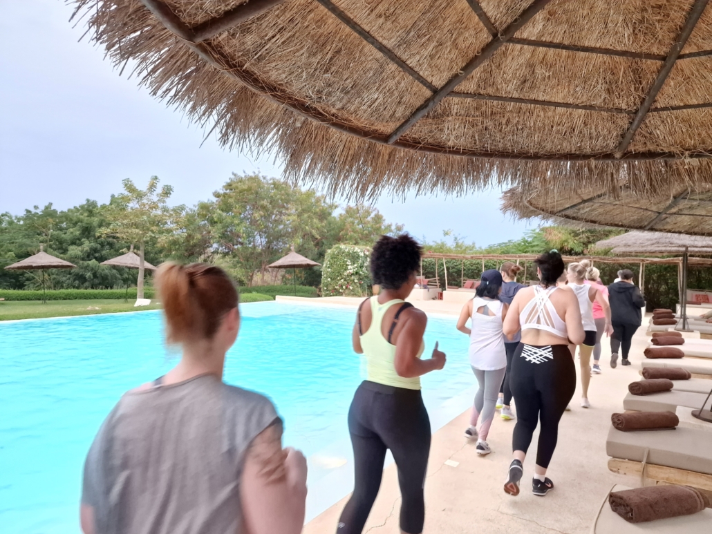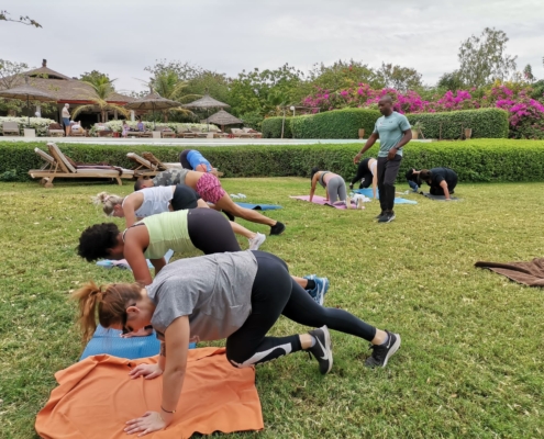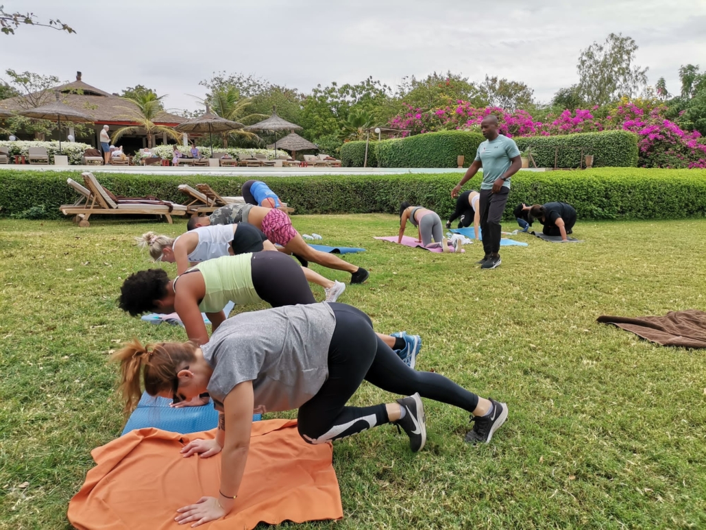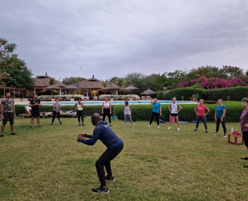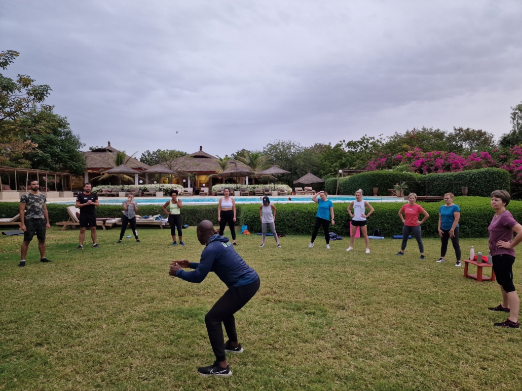 • Arrivée des participants • Transfert au lodge • Entretien individuel avec le coach (objectifs sportifs & condition physique) • Cocktail de bienvenue • Présentation du programme • Dîner | • 1er entraînement • Petit déjeuner • 2ème entraînement • Déjeuner • Safari dans la réserve de Bandia • Massages de bien-être • Dîner | • Pêche au filet à Guéréo • Petit déjeuner • 1er entraînement • Déjeuner • Temps libre / Soins de bien-être • 2ème entraînement • Dîner | • Petit déjeuner • Visite de la lagune de la Somone • 1er entraînement • Déjeuner • 2ème entraînement • Dîner |